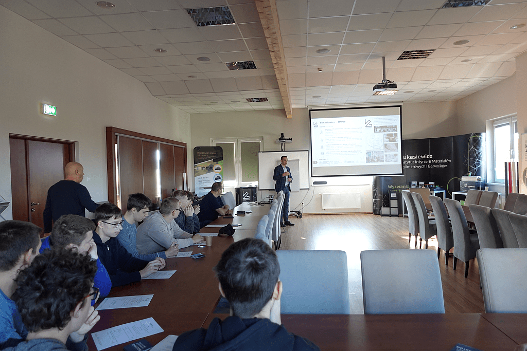 W dniach 20–21 października 2025 r. w Centrum Przetwórstwa Tworzyw Polimerowych w Toruniu gościliśmy uczniów z Zespołu Szkół Centrum Kształcenia Zawodowego im. Ignacego Łyskowskiego w Grubnie, którzy wzięli udział w warsztatach edukacyjnych z cyklu „Guma, farby i lakiery to też polimery”.