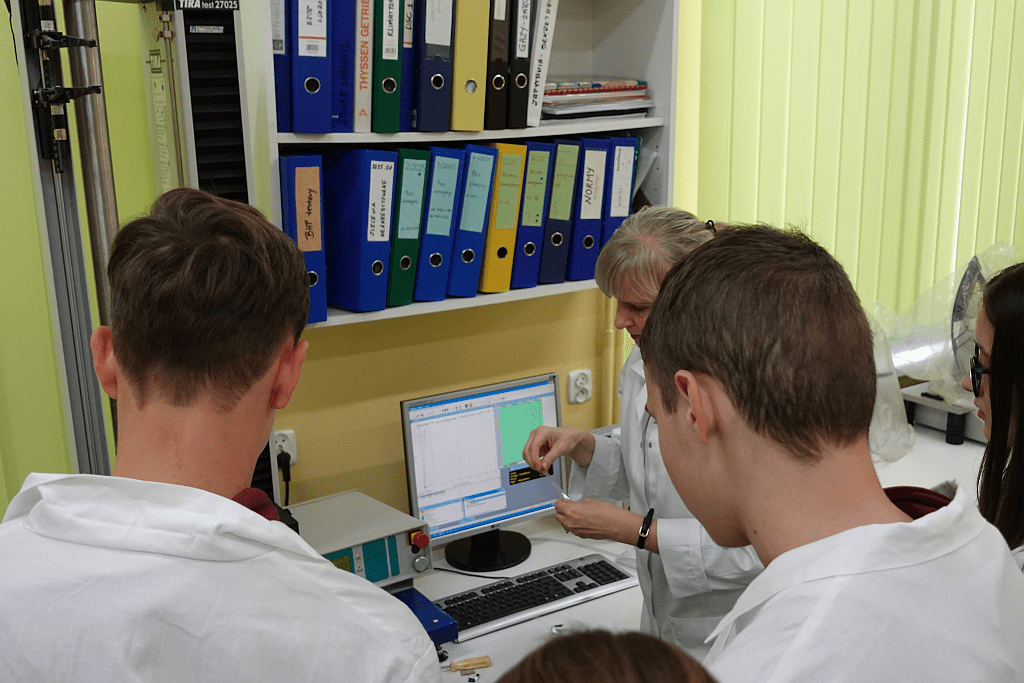 - odwiedzili Laboratorium Badawcze POLIMER, gdzie mogli przyjrzeć się metodom oznaczania właściwości fizykomechanicznych i mikrobiologicznych materiałów,